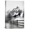 Stillness surrounds Snowlight Keep, where soft white, charcoal gray, and muted brown create a serene mountain chapel scene. This canvas wall art blends light and texture with neutral colors, perfect as framed wall art for cozy interiors seeking calm, wintry elegance and timeless alpine charm.