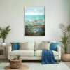 Serenity unfolds through turquoise, ivory, and soft green hues in Coastal Daydream. This canvas wall art reveals a gentle shoreline bordered by blooming coastal flowers. With calming neutral tones, this framed wall art invites the essence of seaside tranquility into any home setting.