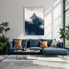 Majestic tones of white, gray, and navy define Frosted Alpine Summit, showcasing a towering snow-capped peak rising above misty forests. This canvas wall art uses neutral colors, making it a bold framed wall art statement piece for modern interiors, offices, or mountain-inspired living rooms.