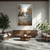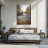 Misty light surrounds a historic stone bridge in Whispers of the Stone Bridge, crafted in soft gray, muted gold, and earthy brown tones. This canvas wall art incorporates neutral colors to create a timeless framed wall art piece perfect for rustic, traditional, or modern spaces.