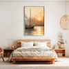 Evenings at sea are captured in the Last Light Voyage canvas wall art, where golden orange, warm beige, and soft gray merge into a serene sunset over tranquil waters. The sailboat reflects peace and adventure, making this framed wall art a timeless neutral tones centerpiece for any room. Perfect for living rooms, bedrooms, or offices seeking calming nautical inspiration.