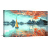 Sailing into tranquility, Reflections Afloat captures a vivid orange sailboat gliding across serene waters beneath a colorful sky. This canvas wall art blends orange, aqua, and white tones with neutral undertones, delivering vibrant motion and stillness for any wall art or framed wall art collection.