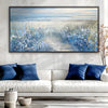 Coastal Bloom radiates tranquility with a serene beach adorned by blooming wildflowers in vibrant blue, soft gold, and white tones. This captivating canvas wall art is a perfect centerpiece for wall art, canvas wall art, or framed wall art, bringing coastal elegance and natural beauty to your home.