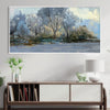 Subtly, layers of quiet trees and muted underbrush unfold in this canvas wall art titled Echoes of the Forest Floor. Featuring cool slate blues, forest greens, and soft neutrals, this forest wall art evokes the silent poetry of nature’s understory. A perfect fit for framed wall art collections with a neutral decor theme.