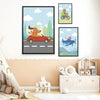 Inspire adventure in your baby’s nursery, kids’ room, or playroom with "Travel Tales" canvas wall art, featuring vibrant red, earthy green, and sky blue tones. This lively triptych showcases adorable animals traveling by car, bike, and plane, sparking curiosity and imagination. Ideal as framed wall art or canvas wall art for kids and baby spaces that love exploration.