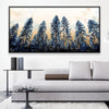 Suddenly striking against a soft beige sky, deep blue firs rise in stunning contrast. "Forest Silhouette" captures a twilight moment where light and form meet, making it an ideal choice for neutral-toned wall art. This canvas wall art blends navy, beige, and black—perfect for framed wall art in nature-inspired interiors.