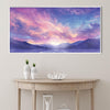 Surround yourself with serenity in this dreamlike canvas wall art where violet skies meet distant hills and waters. Purple Aurora uses soft purples, rose pinks, and navy blues to convey a glowing twilight scene, making it a soothing choice for neutral-inspired framed wall art or canvas wall art collections.