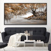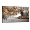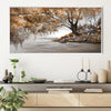 Embrace the hush of fall with The Sound of Soft Leaves, a neutral canvas wall art featuring soft brown, charcoal gray, and ivory tones. The overhanging tree beside a rippling stream brings calm to any space, perfect as framed wall art for reading nooks or tranquil rooms.