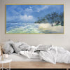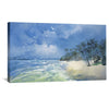 Drifting across a breezy coastline, Salty Wind Palms blends the movement of ocean waves with gentle white birds and lush palm trees. Featuring blue, green, and sandy beige tones with neutral accents, this coastal canvas wall art brings calm energy to your space as framed wall art or canvas display.