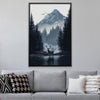 Strength radiates through Stag Portrait, a canvas wall art using navy blue, gray, and white. A majestic stag stands against misty mountains in framed wall art that employs neutral colors to emphasize wilderness and solitude. A bold piece for rustic or modern interiors.