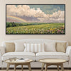 Surprisingly serene, this "After the Rain" canvas wall art captures a rainbow arching over wildflower fields beneath dramatic clouds. The blend of sage green, soft pink, and golden yellow sets a peaceful tone, with neutral colors grounding the vivid details. Ideal as wall art, canvas wall art, or framed wall art for a calming home refresh.