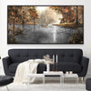 Experience the peaceful journey of rowing through a forested river with this captivating canvas wall art. Muted tones of brown, beige, and dark grey evoke the quietude of nature, reflecting the harmony between land and water. This framed wall art beautifully complements rustic and contemporary interiors alike, adding a touch of natural tranquility.