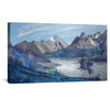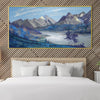 Emerging with understated beauty, this wall art titled Hushed Highlands captures towering mountain peaks against a still lake, featuring neutral grey, deep blue, and muted lavender tones. Ideal for a calming canvas wall art or framed wall art setup, it blends serenity and natural majesty using a palette of sophisticated neutral colors.