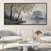Softly framed by mist and light, Still Waters Drift captures a quiet lakeside wrapped in tall grasses and golden sky. Hues of pale gold, soft blue, and ivory blend into a gentle neutral color palette, making this canvas wall art ideal for peaceful spaces. A subtle and elegant addition to any framed wall art collection.