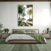 Tranquility unfolds in Meadow Entrance, a canvas wall art featuring soft greens, golden beige, and muted brown. Trees line a fresh meadow path, blending natural vibrancy with neutral tones that create harmony and calm. This framed wall art enhances spaces with timeless countryside beauty.