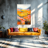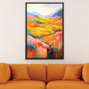 Rich orange, golden yellow, and deep red bring life to Valley of Fire and Bloom. This canvas wall art illustrates a colorful valley of rolling hills and wildflowers, blending vibrancy with grounding neutral undertones. A framed wall art centerpiece that adds energy and warmth to any space.