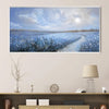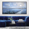 Gently winding through a dreamy blue landscape, this canvas wall art captures the calming presence of a misty trail across blooming meadows. Featuring shades of soft blue, pale grey, and ivory, Blue Meadow Trail brings peaceful depth into neutral-colored interiors as framed wall art or a canvas statement.